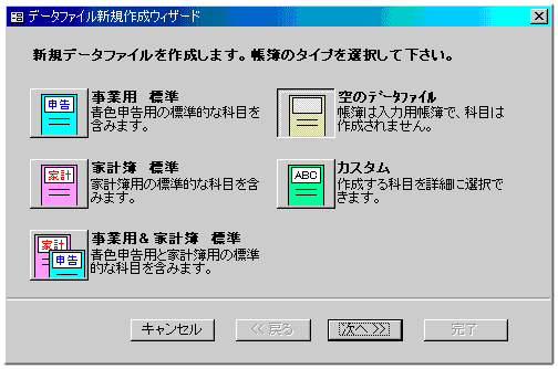 事業用の現金、預金を専用に管理している場合は【事業用 標準】を、家計と一緒になっている場合には【事業用&家計簿 標準】を選択します。