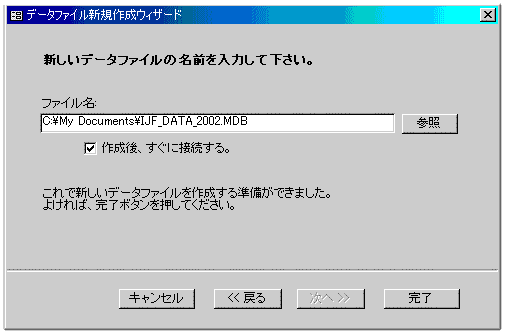 すでに「IJssel会計」を起動できる場合には、メニューバーの[データファイル]−[新規作成]−[新規データファイルの作成]で、「データファイル新規作成ウィザード」を起動します。